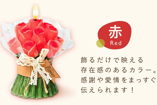 花束のようなフォルムが可愛らしい、薔薇モチーフのキャンドルライト。火を使わない電池式LEDライトのため、安全にやさしい灯りを楽しむことができます。やわらかな光が空間に温もりを添え、リビングや寝室のインテリアとしても活躍します。