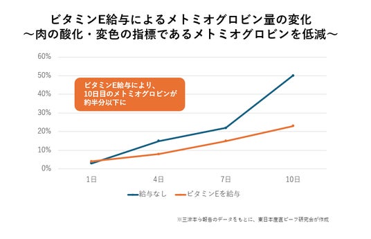 ▽ビタミンE投与が牛肉中のメトミオグロビン量に及ぼす影響