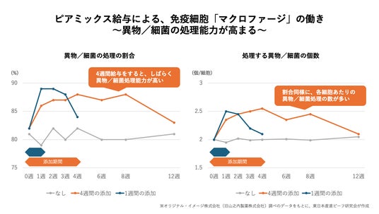 ▽ピアミックス投与によるマクロファージの活性化試験と持続効果に及ぼす影響