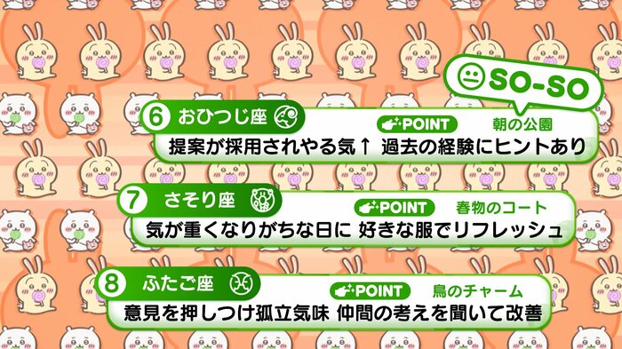 『めざましテレビ』で放送中の「ちいかわ占い」 テレビ放送がない日はお休みで、月~土:朝7時以降に更新予定です。