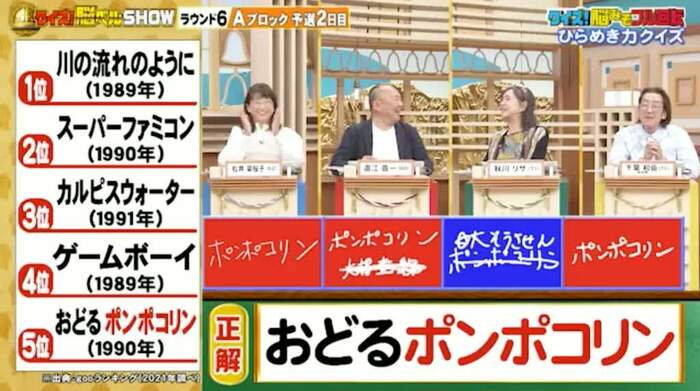 正解は「おどるポンポコリン」。松井さん、直江さん、千葉さんが正解です。