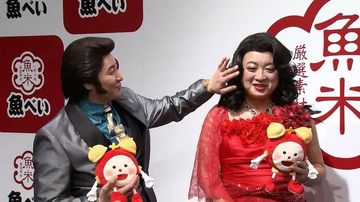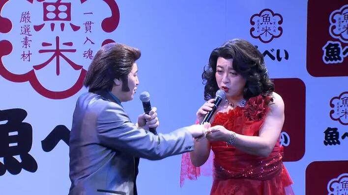 イベントには、PR大使に就任したチョコレートプラネット扮する歌謡曲デュオ「魚子&べい太」が登場。CMでも披露している魚べいキャンペーンソング「握り愛」を歌唱しました。