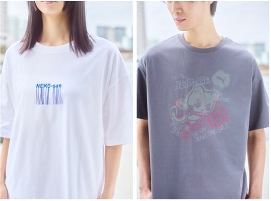 ラインアップには、ユニセックスで着用できるスウェットのセットアップをはじめ、ヴィンテージ風のプリントや毛足の長い刺しゅう加工を施したTシャツなど、多彩なグラフィック表現を取り入れたアイテムが登場。さらに、NEKO-sanの耳が商品から飛び出しているようなデザインのソックスなど、キャラクターの個性を随所に感じられるディテールを取り入れています。スポーティーな要素と遊び心を融合させた、日常でも楽しめるコレクションとなっています。