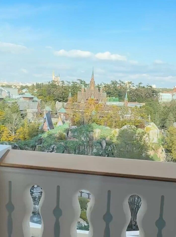 客室の窓からは、アレンデール城やシンデレラ城がそびえ立つ異国情緒あふれる景色が一望でき、まるで物語の世界に迷い込んだかのような特別感を漂わせています。