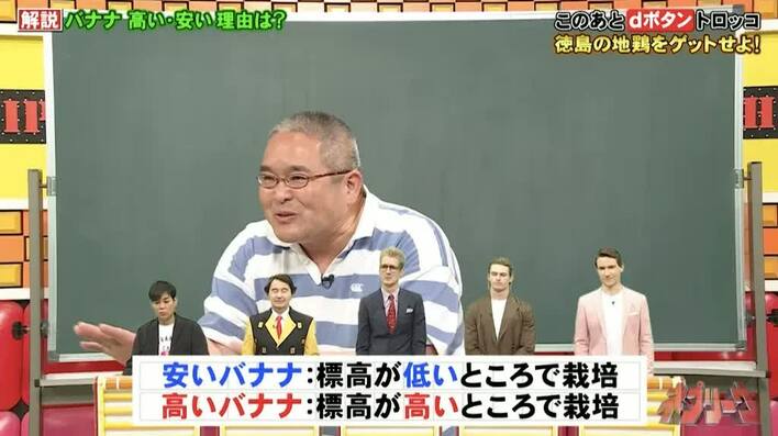 品目ごとの日本が輸入している国の1位を当てる問題では、問題に登場した「バナナ」の値段について、地理担当の村瀬哲史先生が解説を加えてくれました。