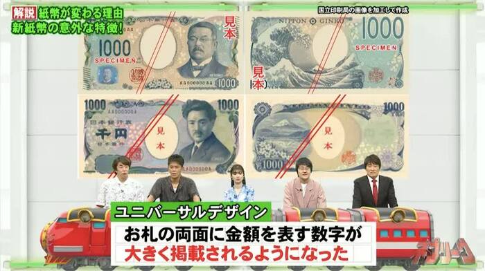 新紙幣には誰もが使いやすいように「ユニバーサルデザイン」が導入され、金額の表示がすべて算用数字に。文字の大きさも大きくすることで、外国から来た人にも使いやすい工夫をしているのだそうです。