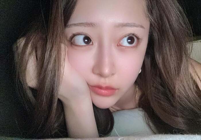 そんなみりちゃむさんは、今回の投稿で「裸眼だと三白眼すぎてカラコン手放せない」とつづり、写真を公開。