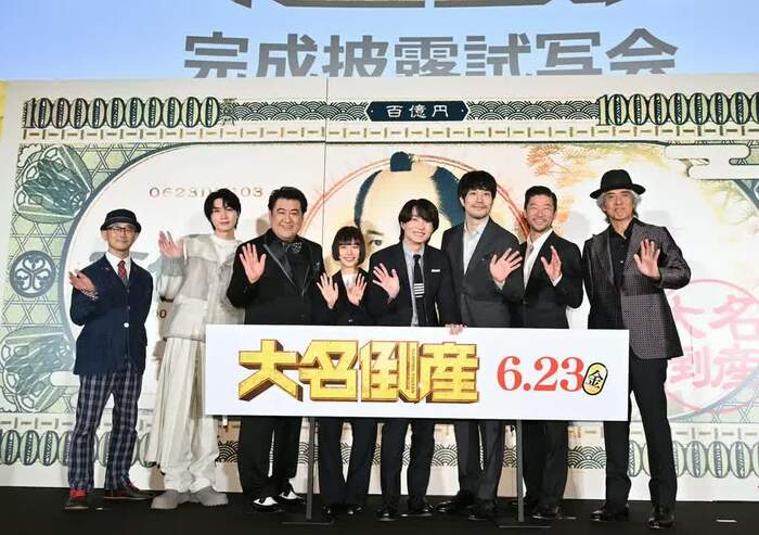 神木隆之介さんが主演を務める映画「大名倒産」完成披露試写会が、5月27日に行われ、神木さん、杉咲花さん、松⼭ケンイチさん、⼩⼿伸也さん、桜⽥通さん、浅野忠信さん、佐藤浩市さん、前⽥哲監督が登壇しました。