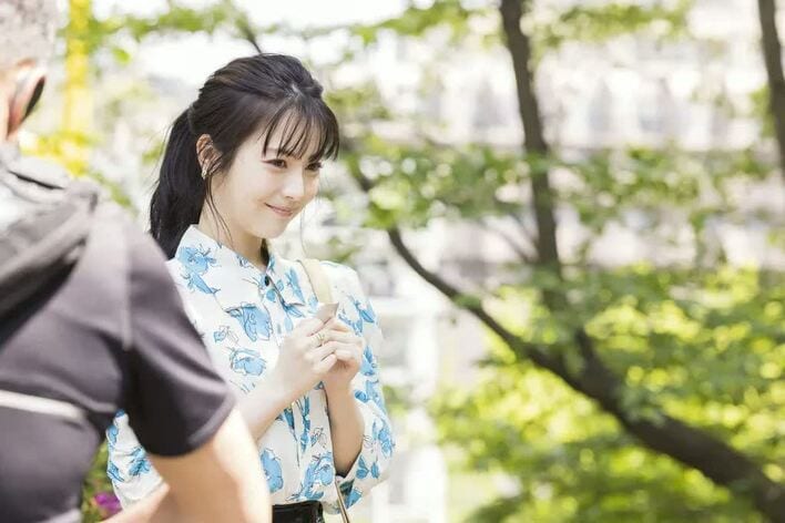「今日は誰に会いに行く?」とキーメッセージをカメラに向かって言う場面では、爽やかな明るい笑みで、ガムを噛みながらウキウキ心躍る様子を演じていく浜辺さん。これには監督も、モニターを見ながら思わず「んー!良い!」と一言。