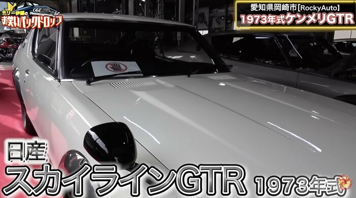 登場したのは、“ケンメリ”の愛称で知られる1973年式の日産「スカイラインGT-R(ケンメリ)」。生産台数はわずか197台とされる、伝説的なモデルです。