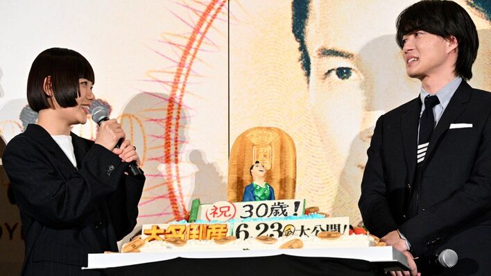 5月27日、映画「大名倒産」完成披露試写会が行われ、神木隆之介さん、杉咲花さんらが登壇。