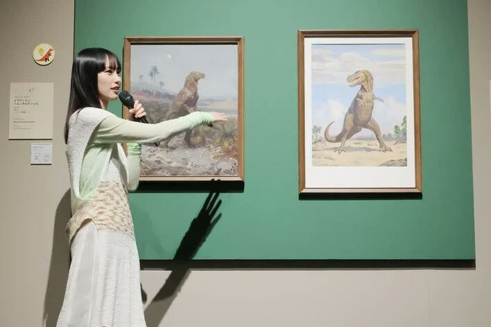 一足早く展示を鑑賞した南さんは「化石ではなく絵画が主役の恐竜展はめずらしく、見ごたえがありました。時代ごとに恐竜の描き方が変わっていて、素敵」と笑顔。