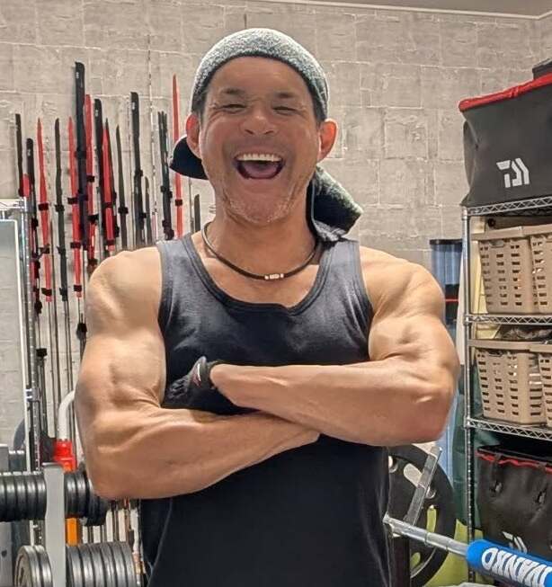 盛り上がった腕の筋肉はもちろん、その筋がくっきりと浮かび上がり、引き締まったたくましさが際立っています。51歳とは思えない圧巻の肉体です。