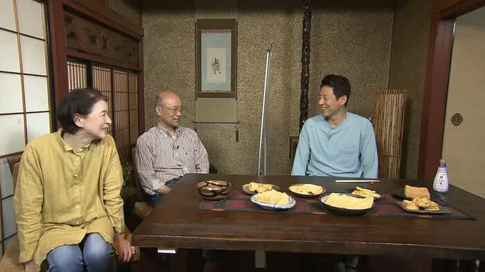 「2人で休みに食べ歩いて試行錯誤して作った」と裕子さんが自信を見せるおぼろ揚げに、しょうゆをひとたらししていただくと、「もう、お豆の香りがすごいんですよ。おしょうゆも一つの出汁としてとらえてる感じ」と、松岡さんは頷きながら味わいます。
