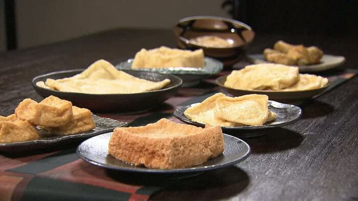そして、松岡さんの目の前には様々な油揚げがずらり。福井県では浄土真宗の信仰が厚かったため、仏事で欠かせない油揚げが根付いたそうで、「厚揚げは元々は贅沢品の部類だった」と利直さんが解説。