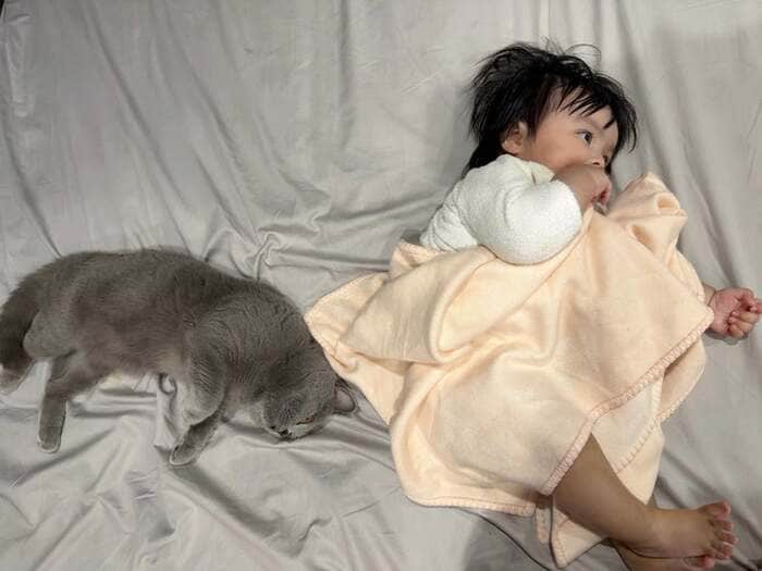 そんな我が子と愛猫の姿に「かわいすぎる」と川崎さんメロメロ♪