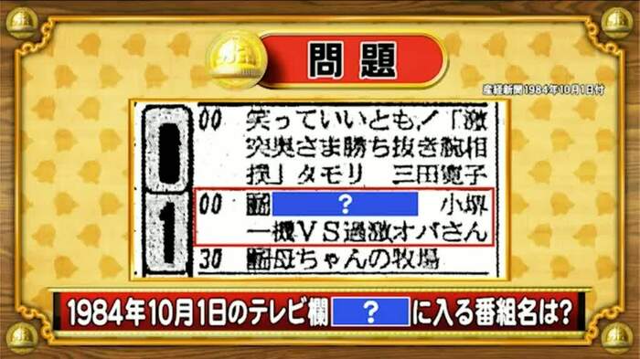 最後は、テレビ欄の問題。今から39年前の1984年10月1日のテレビ欄、「?」に入る番組名をお答え下さい。