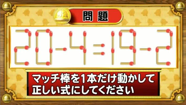 最初は、マッチ棒問題。次の式のマッチ棒を1本だけ動かして正しい式にしてください。
