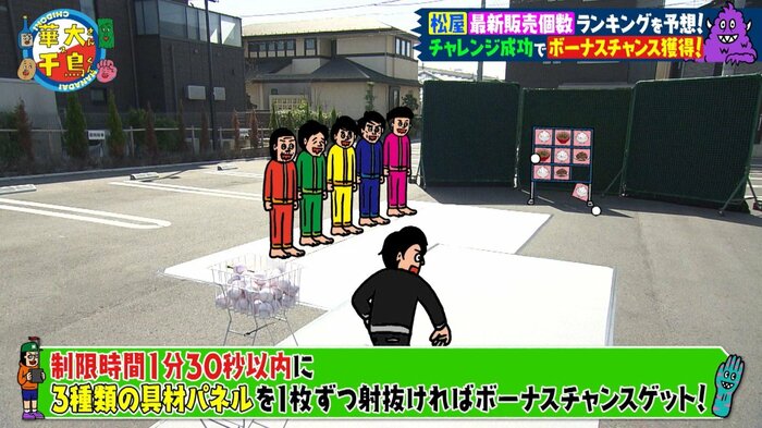 ここで一同は、ストラックアウト形式のゲーム「牛めしストラックアウト」に挑戦。大悟さんの失敗で間宮さんまでもが電流に悶絶する場面もありつつ…なんとか成功して「2コールチャンス」を獲得。