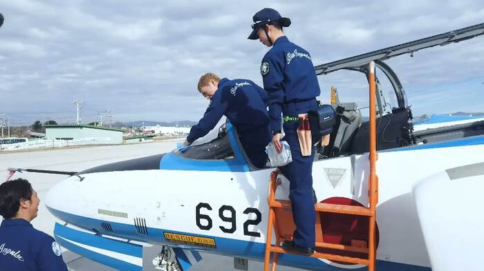 今回、菊池さんが乗るのは、6機編成のブルーインパルスの2番機。ブルーインパルスの魅力である、神業を間近で見ることができる特別ポジションです。