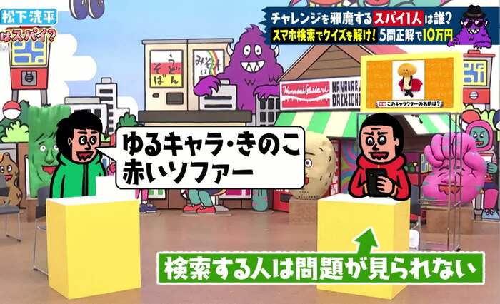 写真で出題されるクイズについて、それを見て“写真を言葉で伝える人”と、問題を見ずに“検索する人”の2人1組に分かれて協力。スマホの検索機能を使って、答えにたどりつかなければなりません。
