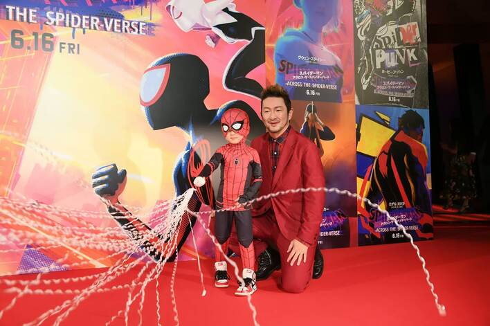 「スパイダーマン」シリーズの最新作、「スパイダーマン:アクロス・ザ・スパイダーバース」の日本最速試写会レッドカーペットイベントが6月5日に行われ、花村想太さん(Da-iCE)、中村獅童さんらスパイダーマン好きの著名人が登場しました。