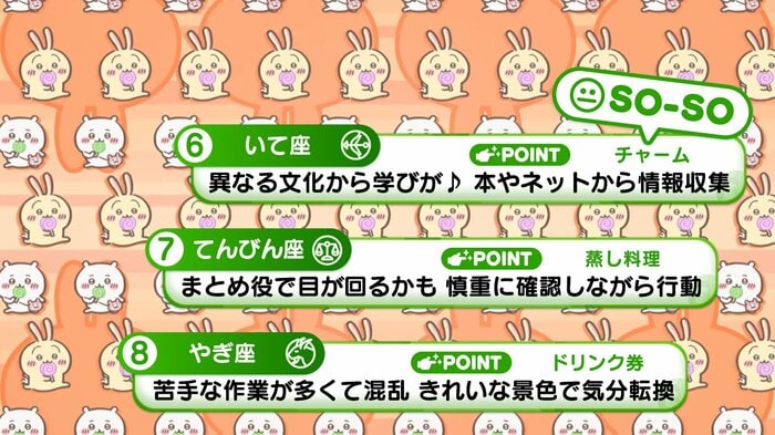 『めざましテレビ』で放送中の「ちいかわ占い」 テレビ放送がない日はお休みで、月~土:朝7時以降に更新予定です。