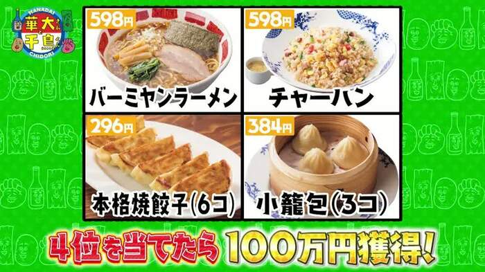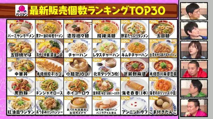 今回予想するのは、本格中華チェーン「バーミヤン」の最新販売個数ランキングTOP30。ランキングが低い順に10種類のメニューを連続で当てれば、100万円を獲得できます。