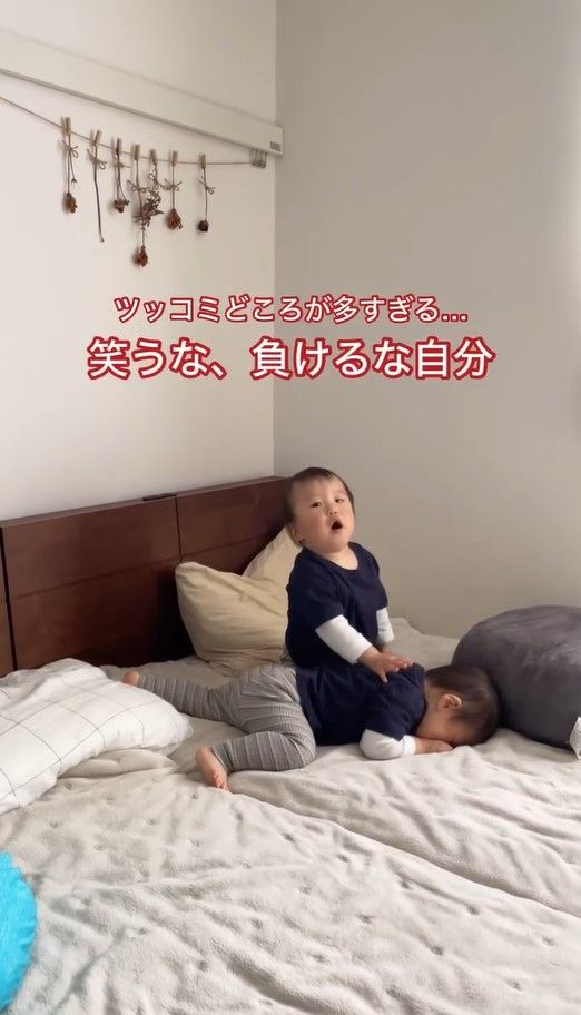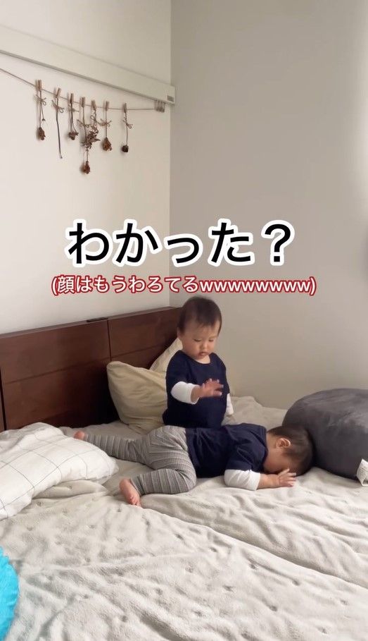 2人の息ぴったりの即興劇を目の当たりにしたお母さんは、こみ上げる笑いをなんとかこらえて「寝なさい」と注意をしますが…
