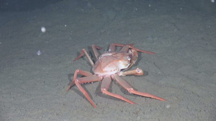 富山湾最深部に水中ドローンが着底すると、そこには今回のターゲットのひとつにすえていた“深海で大爆笑する”超希少生物の姿が!