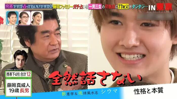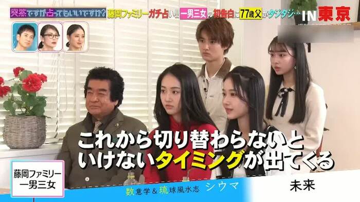 4月17日(月)放送の『突然ですが占ってもいいですか?』(フジテレビ)は、藤岡さん一家(藤岡さん、天翔愛さん、藤岡真威人さん、天翔天音さん、藤岡舞衣さん)がシウマさんに占われました。