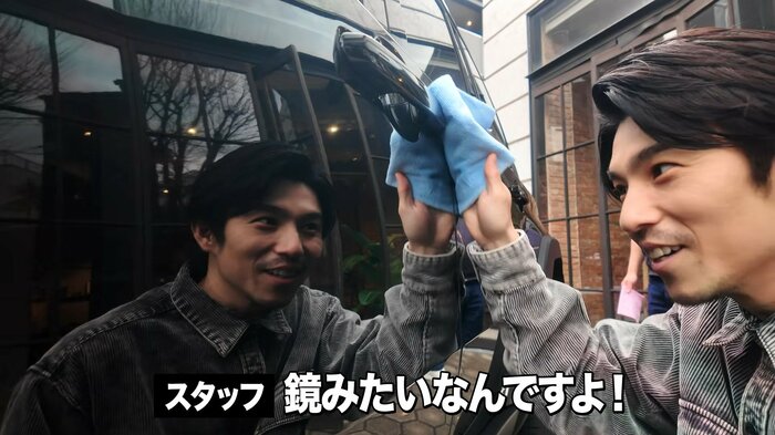 すると、まるで鏡になったかのように、車体に中尾さんの姿がきれいに反射。ボディーが輝きを放っている様子が伺えます。