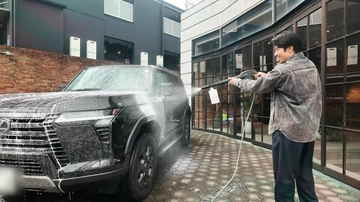 まずは洗車から。高圧洗浄機を使って汚れを落としていきます。