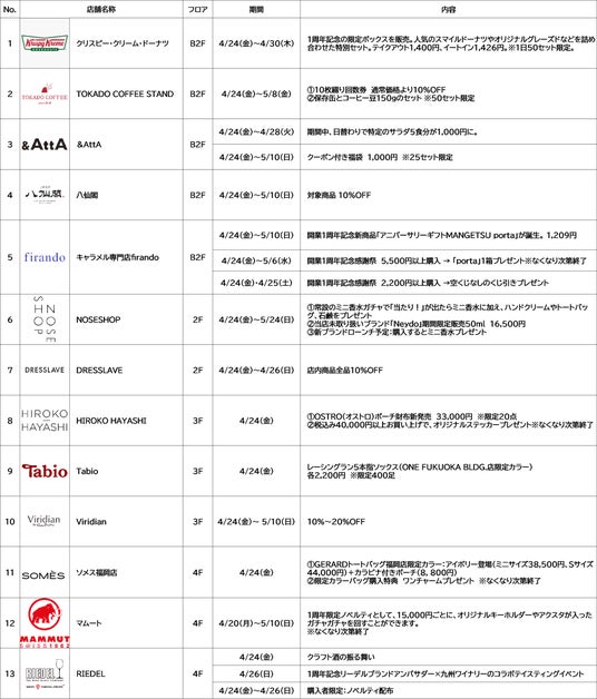 URL: https://onefukuoka-building.jp/special/1st-anniversary/shop_information.pdf