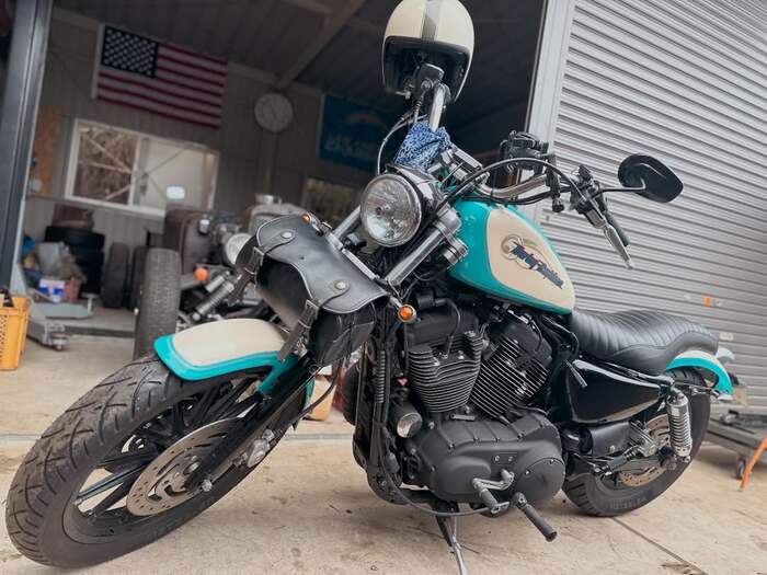 「完全に俺色に染めてやったぜ!!春が楽しみじゃ!塗装は千葉のスプレーマンさん。」というコメントとともに公開された写真には、ガレージの作業場に佇むハーレーが写っています。