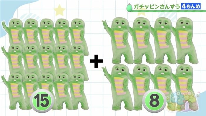 どんどん増えるガチャピン!ぜんぶで何ガチャピン?楽しく数えながら、むずかしい算数にチャレンジしよう!