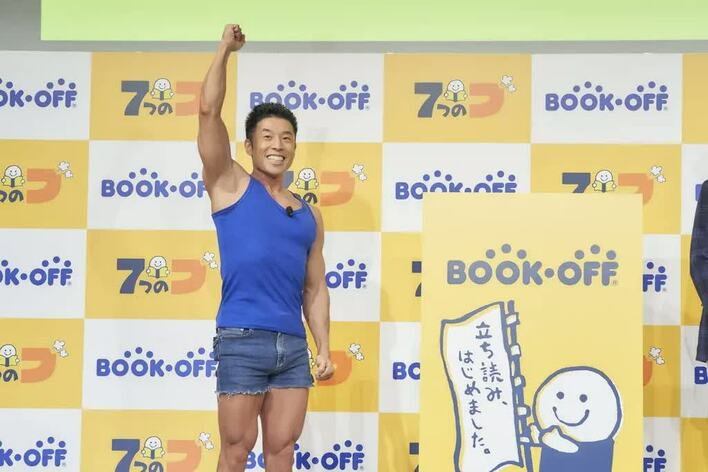 6月19日、「ブックオフ立ち読み解禁宣言」発表会が行われ、なかやまきんに君が登場しました。