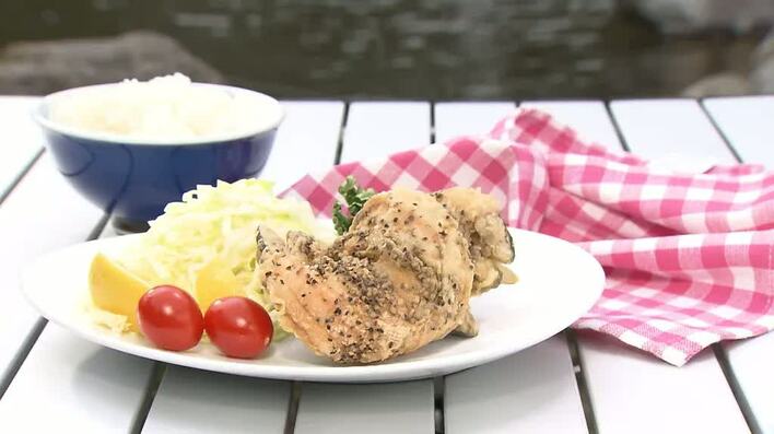 「うわ~!熱い」と心配する村上さんを見て、「カリッカリ!こんなに身がふわふわしてるんですね」と、絶妙な揚げ方を絶賛し、「おいしいわ!良い感じでこしょうも効いてる」と食べる手が止まりません。