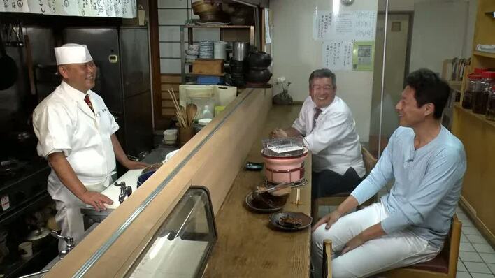 福井市の繁華街、片町にたたずむ「割烹 間海」を訪れた松岡さんは、店主の間海克己さんと「肉はナカノ」代表の中野直幸さんに、一風変わった肉料理を紹介してもらうことに。