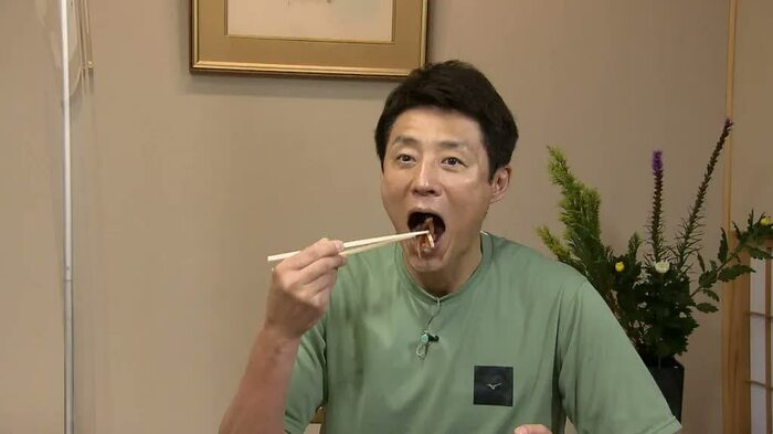 松岡さんは、口に運んだ瞬間に「おお!」と思わず笑みをこぼし、「へしこってこんなに噛み応えがあるのかっていうくらい、ぐっと噛むとじゅわって出てくる」とジェスチャーを交えて味を表現。