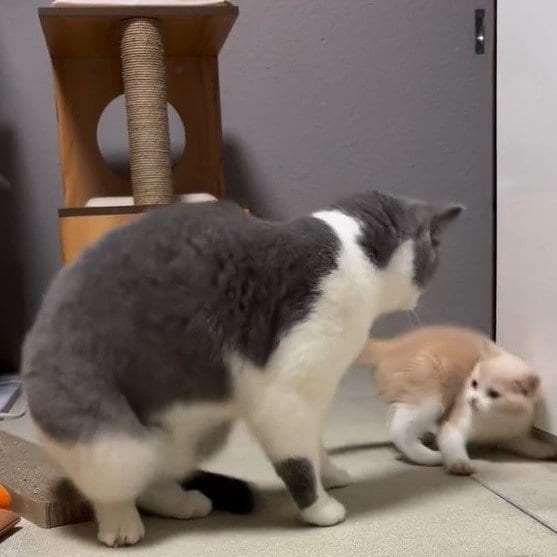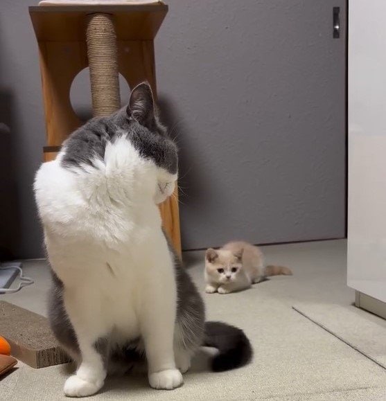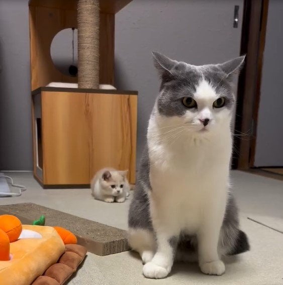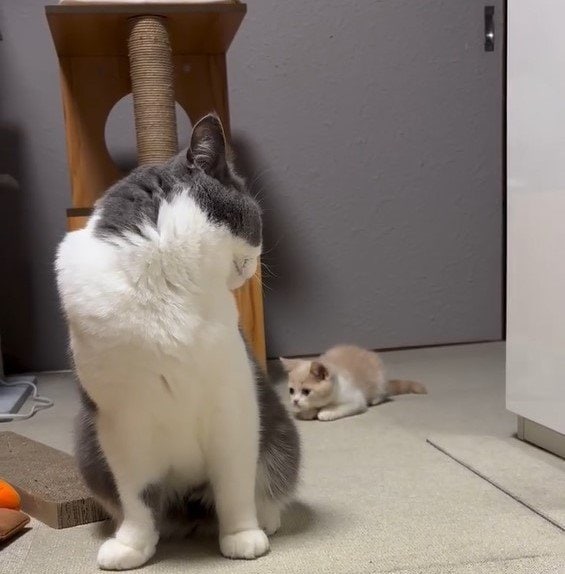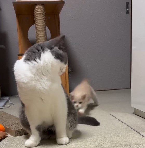 今回のような“尻尾遊び”は普段から目撃されるそうで、毎回ハンターのように尻尾を狙っているんだとか。「にぼしも基本は『やれやれ…』と相手をしていますが、あまりにしつこいと教育的指導(猫パンチ)を繰り出すことも。どんぐりにはあまり効果がないようですが…笑」と、“お兄ちゃん”として注意するも“弟くん”は好奇心が止められないようですね。