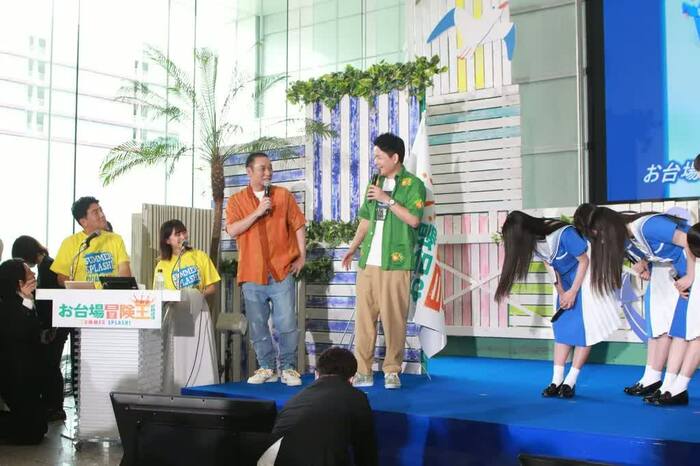6月21日、「お台場冒険王 2023 SUMMER SPLASH!」の制作発表が行われ、お台場冒険王 2023 団長を務める千鳥(大悟さん・ノブさん)と、オフィシャルサポーターの僕が見たかった青空が出席しました。
