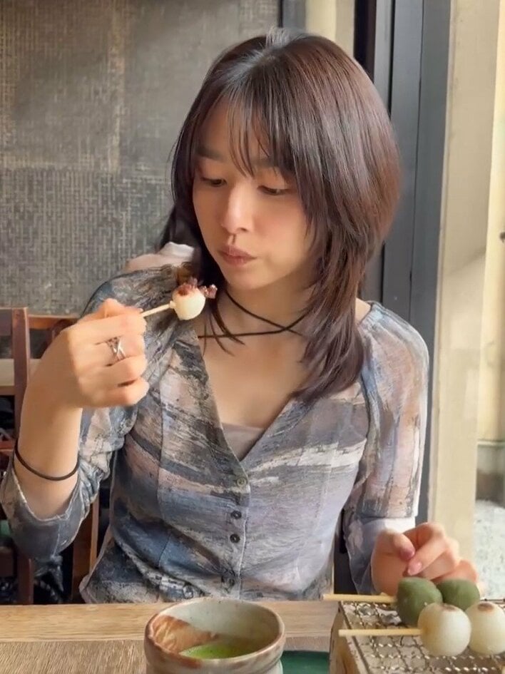 甘味処ではお団子も味わったようで、あんこがのったふっくらしたお団子を見つめ・・・