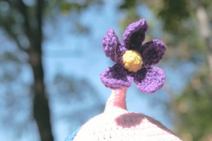 さらに、頭頂部には紫色の花がぱっと咲いています。本物のお花のようなクオリティーの高さに驚いてしまいます。
