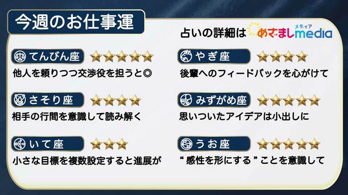 続いて、てんびん座からうお座までのお仕事運を一覧で!