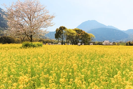 しまばら火張山花公園では、春になると約200本の桜や1000万本の菜の花、500万本のミックスフラワーが咲き誇り、公園一面が色鮮やかな花景色に包まれます。