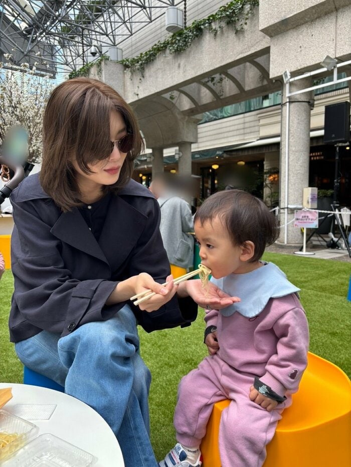 隣に座っていた“兄バーグ”にお箸で麺を食べさせてあげるような様子もパシャリ!