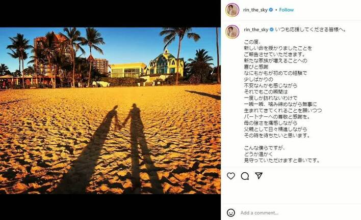 その中で、「新たな家族が増えることへの喜びと感謝 なにもかもが初めての経験で 少しばかりの 不安なんかも感じながら」と明かし、「それでもこの瞬間は 一度しか訪れないわけで 一瞬一瞬、噛み締めながら無事に 生まれてきてくれることを願いつつ パートナーへの尊敬と感謝を。母の強さを痛感しながら父親として日々精進しながら その時を待ちたいと思います。」と決意を綴っています。