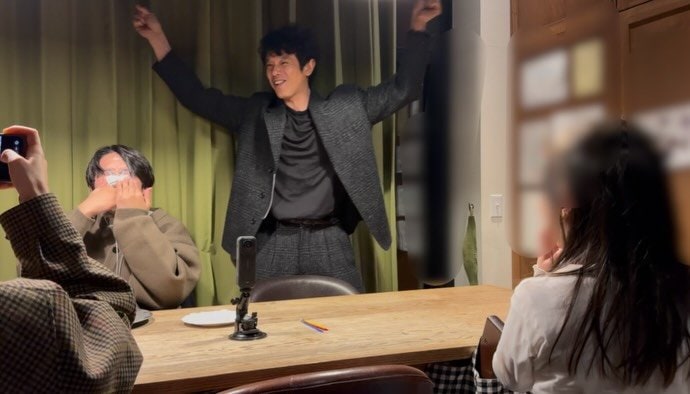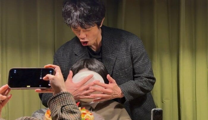 「後ろからパイ投げ大成功!」と、バラエティの定番“顔面パイ”でバースデーサプライズ!