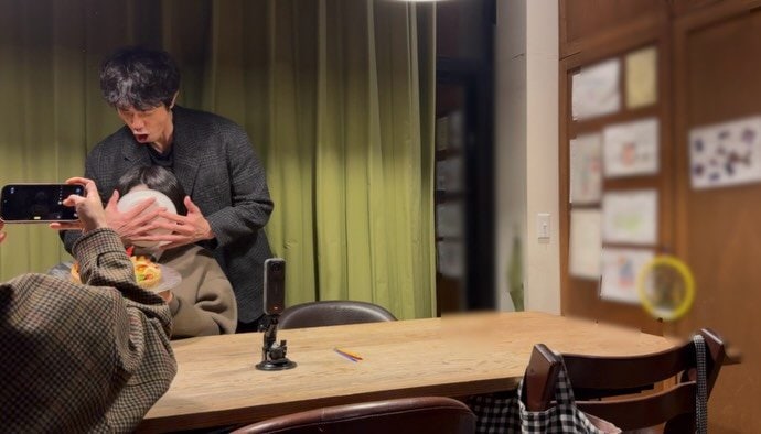 投稿された写真には、自宅のテーブルでスマートフォンを向けられ、大好きなタルトケーキとともに写真を撮る息子の姿が。その背後には、そっと忍び寄る庄司さんの姿もあり、右手には何やら企んでいる様子がうかがえます。